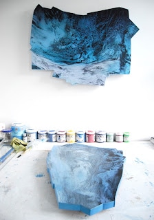 “The prints Longwave and Ammonite Sky were inspired by the Tsunami of Boxing Day 2004, their long shapes originating from weather satellite imagery which I stretched and enhanced until they reminded me of a wave, notably the Japanese printmaker Hiroshige’s famous wave, which also represented a Tsunami.”