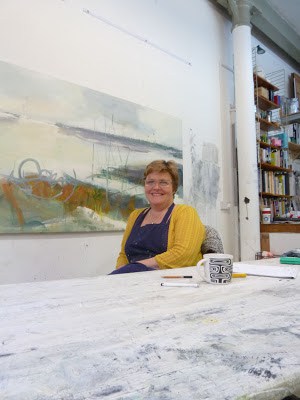 Another clear childhood memory is her first sighting of the Forth Rail Bridge from the train down to Edinburgh. The iconic structure is a particular favourite of hers. She once set up studio on Inchgarvie island, right under the bridge, in a structure made out of scaffolding poles . She has sailed under it and today she is thrilled at the thought of abseiling off it during the sponsored event organised by Art in Healthcare in May! Kate Downie’s enjoyment of life is evident and so is her inquiring mind as she sketches on her newly acquired iPad while we talk. Drawing is second nature to her.