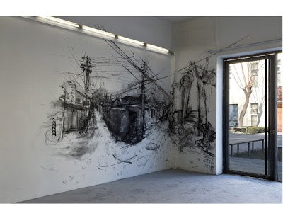 This residency on the island led to a wall installation in the Round Room of the Talbot Rice Gallery. Performances and wall drawings occupy a special place in her practice. She adds almost with a pinch of regret that in different circumstances she would have been a graffiti artist. While in Beijing, she drew a cityscape, ‘The Concrete Hour’, on the walls of the gallery dominated by flyovers where she was based and punctuated her charcoal drawing with marks made with bicycle tyres and shoes. She is looking forward to doing a performative drawing this summer in the Kelly Gallery in Glasgow which, incidentally, is only a ten minutes walk from the city’s own Chinatown, itself situated under the M8 motorway as it slices through Glasgow.