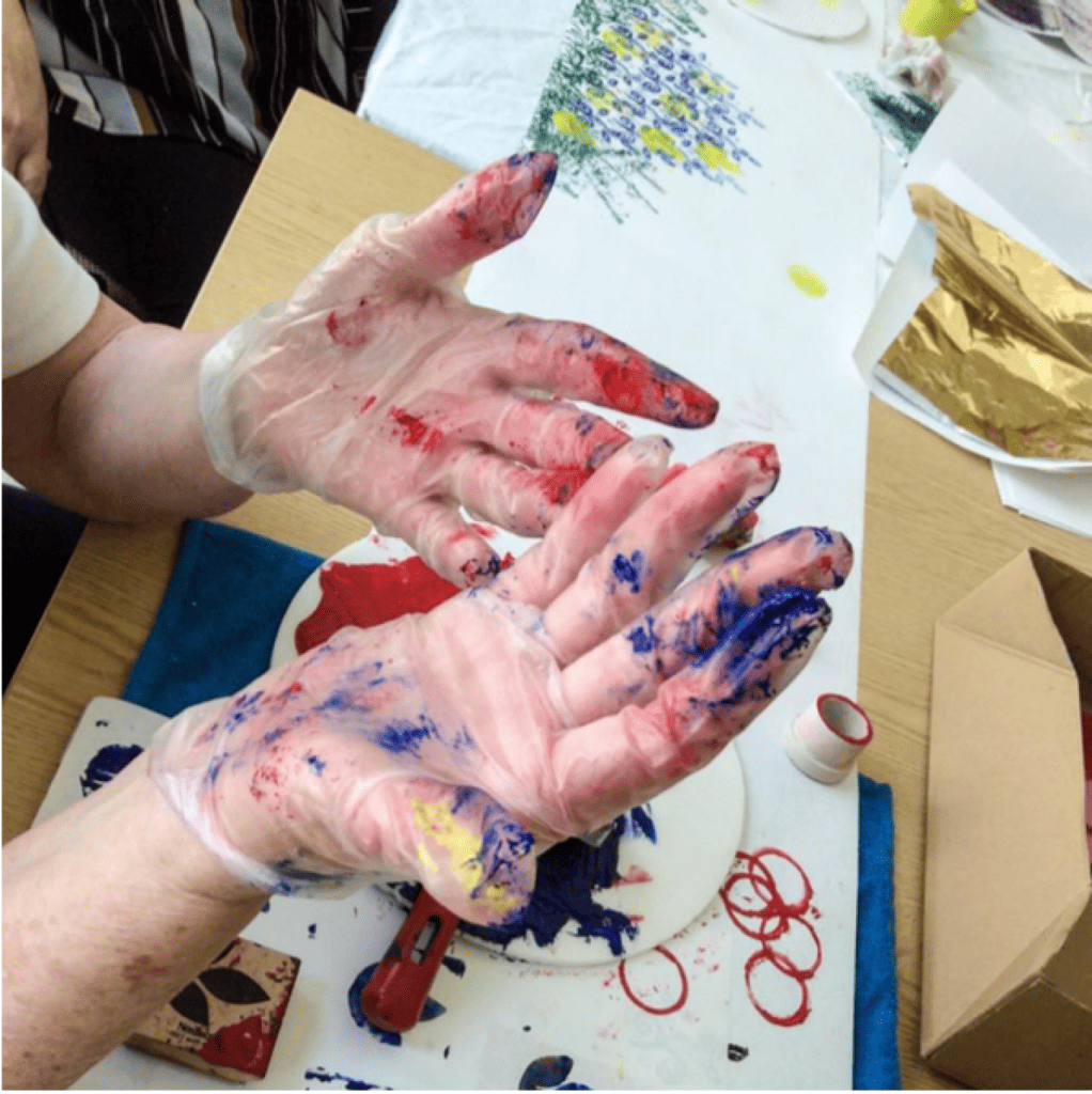 We always stress that no experience of art is necessary for our workshops and most people that get involved have not done any art since school. For anyone, trying the ‘unknown’ and coming along to a group workshop for the first time it can be daunting, but this is especially true for those with health issues, particularly mental health issues. When we first piloted this project, we had no attendance at the first workshop; it was too big a jump to go from a referral to a community venue to meet an artist and a group of strangers. We discovered that we needed a stepping stone. To combat the barriers to taking part we now hold one to one sessions with each participant prior to starting the workshops using an approached based on occupational therapy practice to set personal goals and allay fears about what to expect.