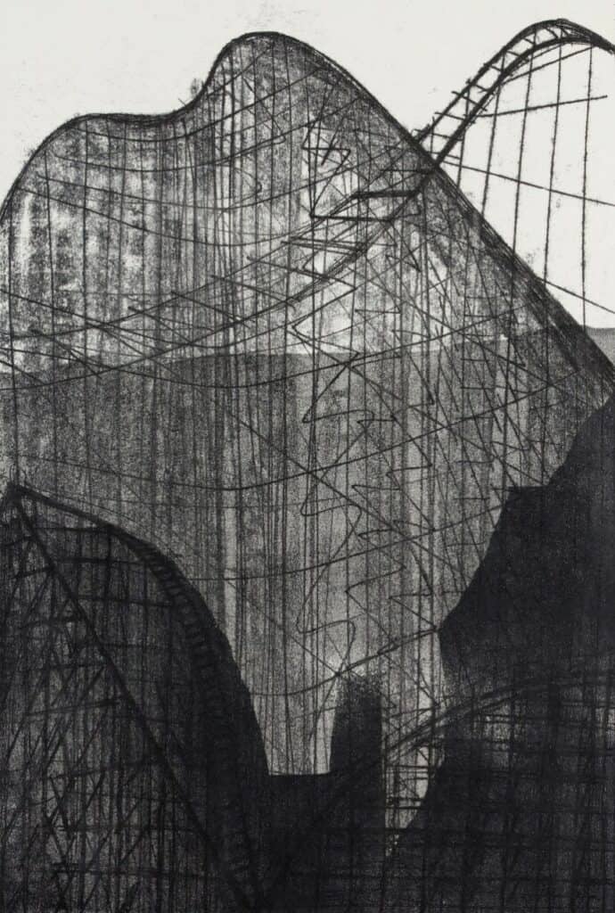 “The idea that you want to escape and take your mind off ….. and the idea that you want to look at other people’s work and get inspiration……it’s good to do it in the group because you can feed off other people ….I was ‘prodded’ into doing things I wouldn’t otherwise because I do the same old things at home so it’s really good cos I’ve got outside my comfort zone yet I’m still comfortable! I really do look forward to it. There’s a little weird engine in this picture which has alerted me to the detail – because you said something about noticing thing about when you’re drawing them that you would never usually see ….and I hadn’t noticed that. I don’t particularly like it there. This is completely different…it takes you somewhere else and that’s the point I was trying to make that it takes you to a whole other place.”