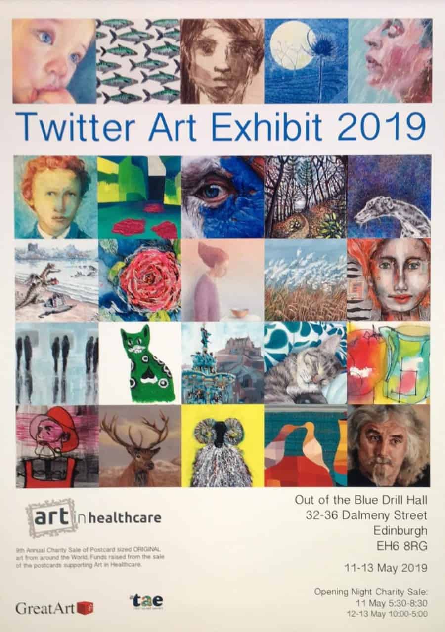 Proceeds from the annual Twitter Art Exhibit are donated to a charity and in 2019 Art in Healthcare was chosen as the beneficiary charity. Cards are £30 or four for £100.