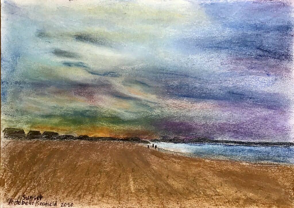 I’ve never worked with pastels before and the route between Seafield and Kings Road was my daily walk during lockdown as I was shielding. That part of the beach was hauntingly quiet and so beautiful at sunset.