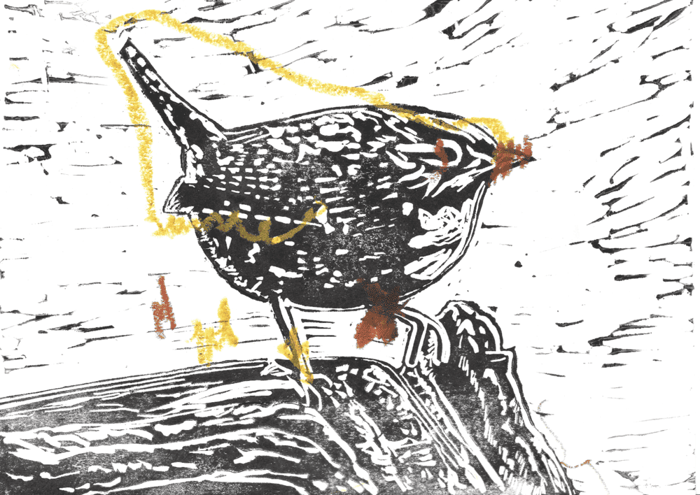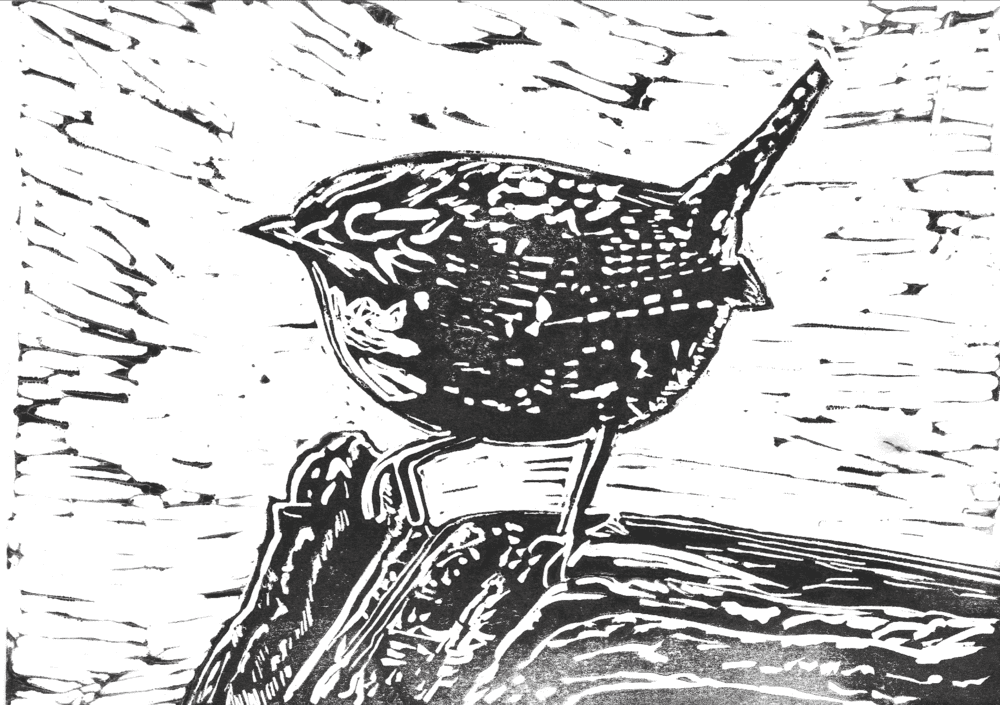 Image 1 is my lino cut of a wren.