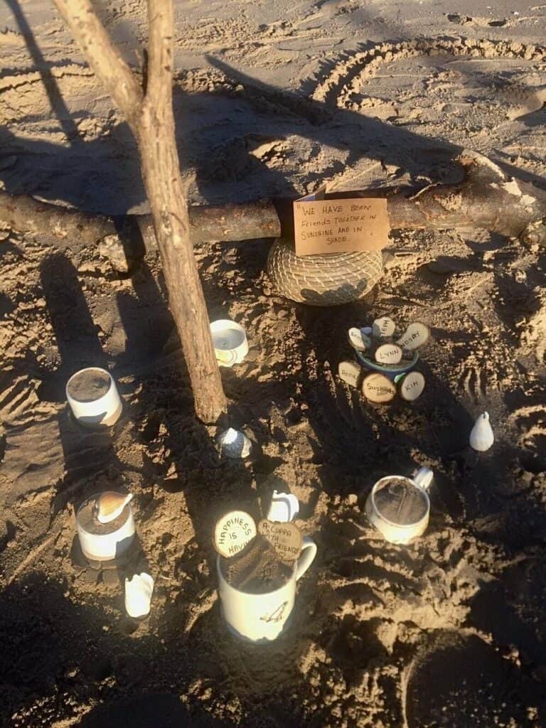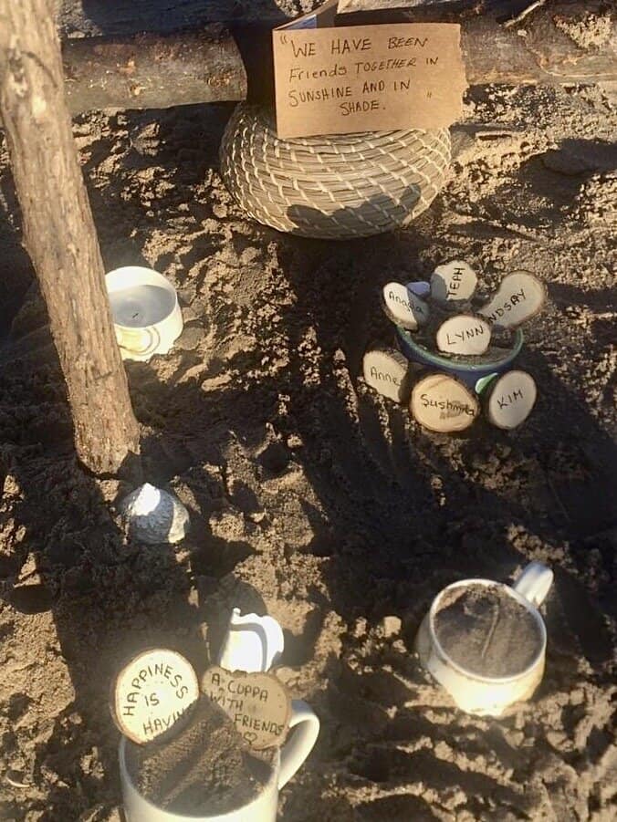 We chose to do a joint piece for this exhibition to honour our friendship (Stephanie and Kim) and the friendship in our lovely art group (Lynn, Sushmita, Anne, Lindsay and Angela). Our ‘positive places’ piece is also about relaxing environments (this one being Portobello Beach), natural surroundings, cuppas, chats and quotes to represent the times we have shared together and that remind us that this group is a positive place for us also.