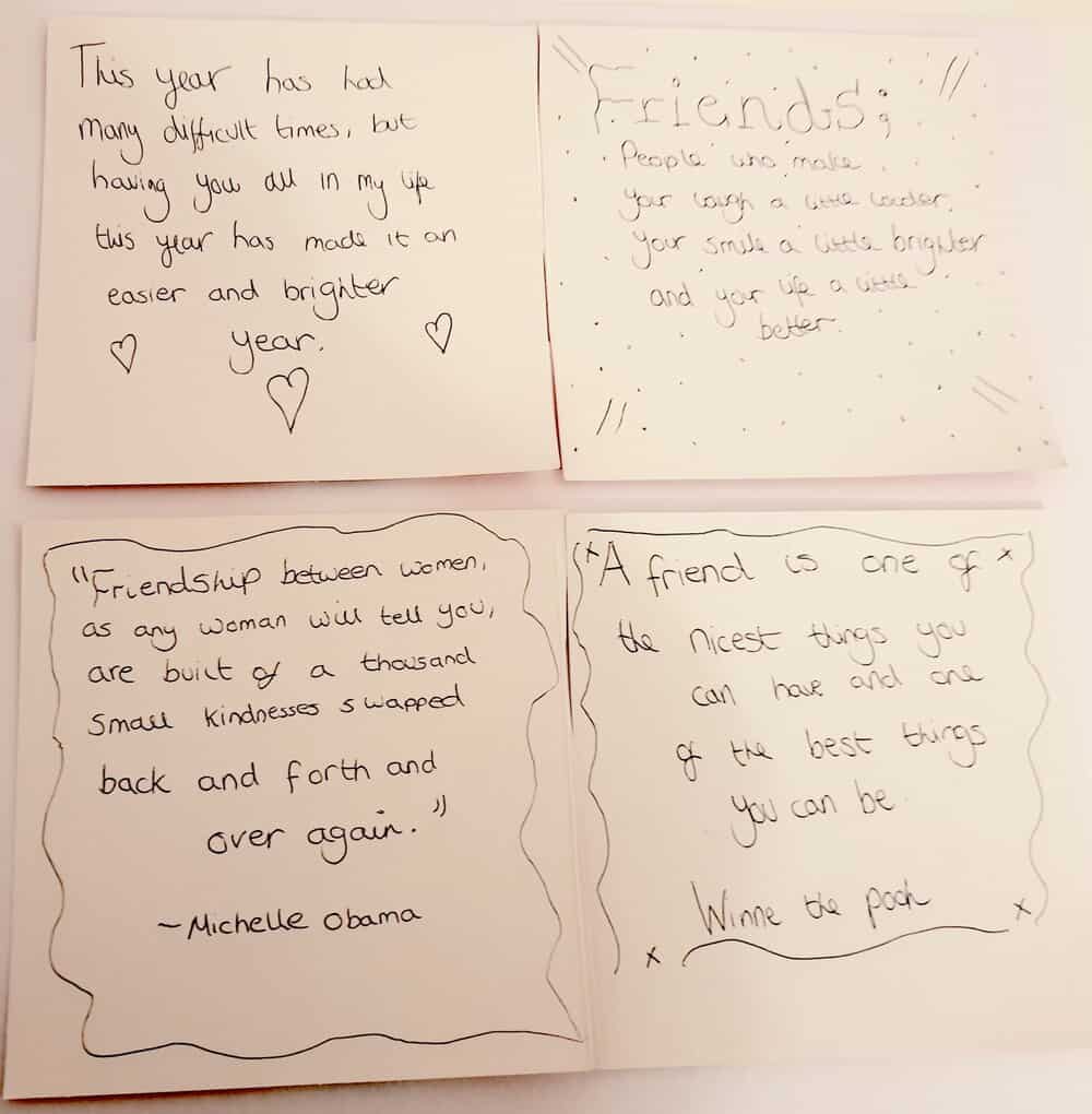Moreover, the quotes we picked were to describe the positive impact of what it has been like to be a part of this group. They represent the support and moments of joy this friendship and art group have created during the rollercoaster of year 2020.