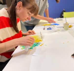 Our Room for Art group at Whale Arts in Wester Hailes have produced some lovely lino prints and marbling with artist Fraser…