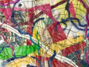 Check out this celebration of line, shape and vibrant colour, using a variety of techniques from expressive painting to machine embroidery from…