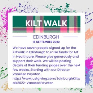 We have seven people signed up for the Kiltwalk in Edinburgh to raise funds for Art in Healthcare. Please give generously and support their walk….