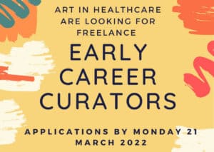 FREELANCE OPPORTUNITY TITLE: Early Career Curator Fee of £1050.00 [5-6 days of activity] We are looking to curate a series of exhibitions that can be selected by healthcare settings. We would like to work with two early-career curators to develop four such exhibitions. You will have the freedom to curate from the full collection and we encourage you to develop an exhibition of your choice. You will be supported by Art in Healthcare’s Curator….