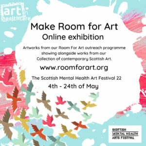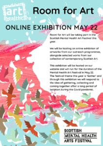The Scottish Mental Health Arts Festival 4-24th May 2022 iWe will be hosting an online exhibition of artworks from the Room for Art workshops alongside selected works from our collection of contemporary Scottish Art. The exhibition will be on our website and will run for the duration of the Art Festival in May 22….